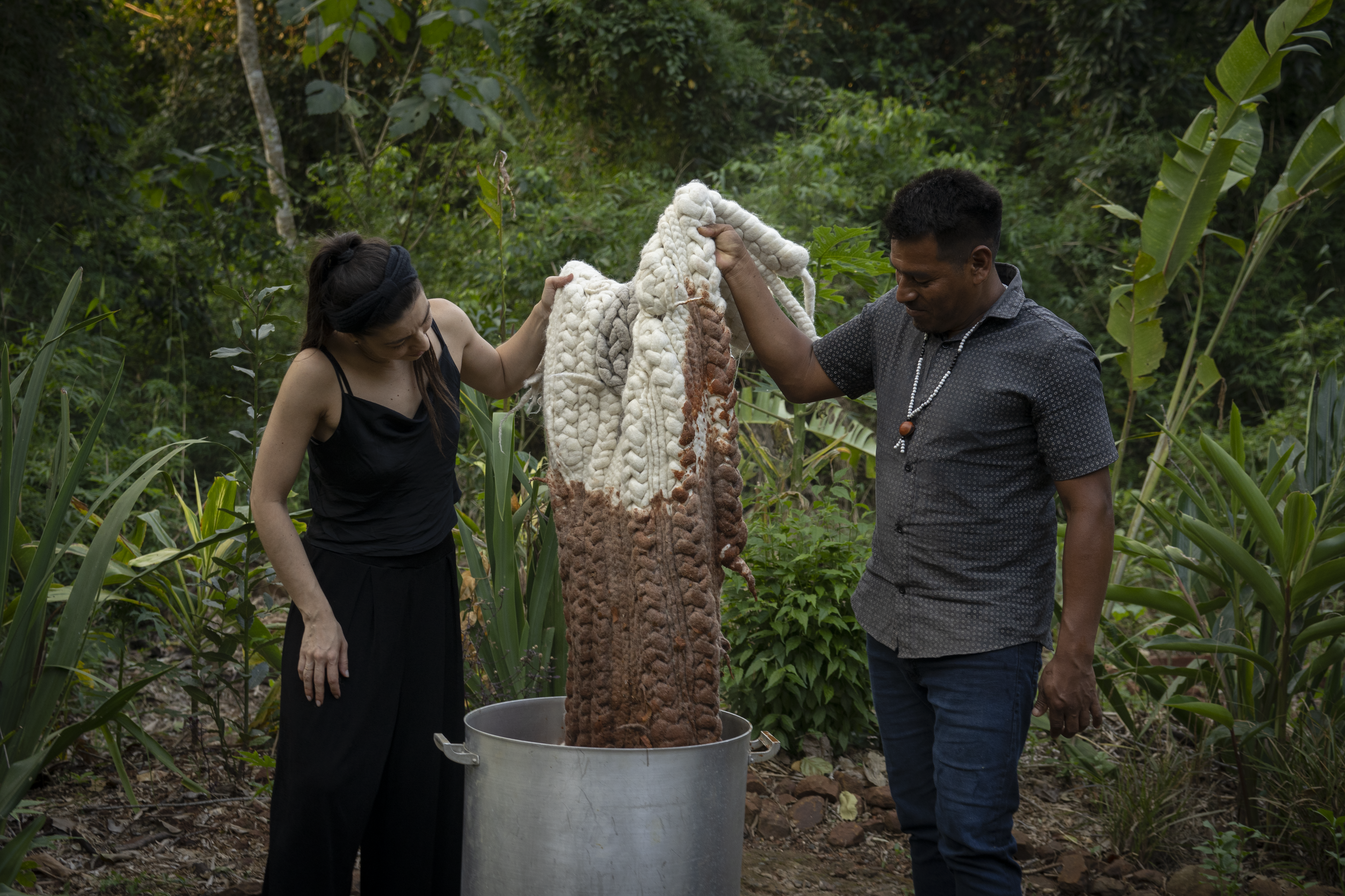 The artist found inspiration from local artisan traditions, natural colors, Inca culture and Pachamama rituals. Drawing on her experience in education, she invited children from the Sol y Luna Home to participate in an art workshop.